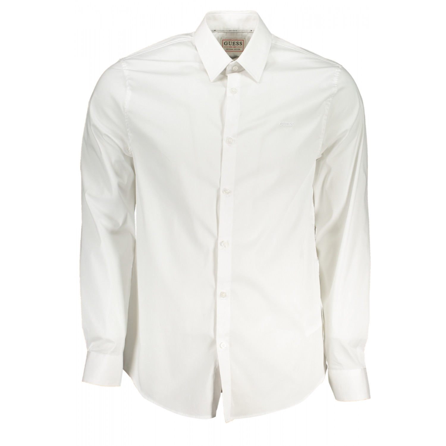 CAMISA MANGA LARGA, SLIM FIT, PUÑOS 2 BOTONES, CUELLO ITALIANO, BOTONES, BORDADO, LOGO, ALGODÓN ORGÁNICO