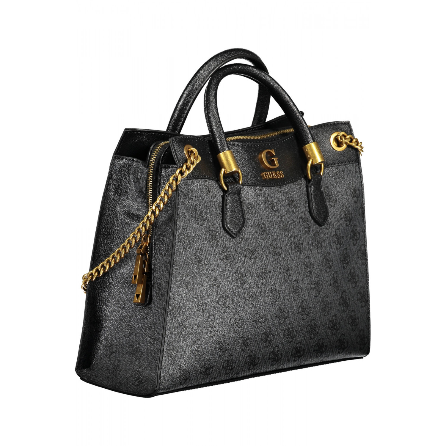 BOLSO DE 2 ASAS, 2 ASAS DE HOMBRO CON CADENA, 1 BOLSILLO EXTERIOR, 3 COMPARTIMENTOS, 1 BOLSILLO INTERIOR, ESPACIOS INTERNOS PARA DOCUMENTOS, DETALLES EN CONTRASTE, CIERRE DE CREMALLERA Y AUTOMÁTICO, LOGO