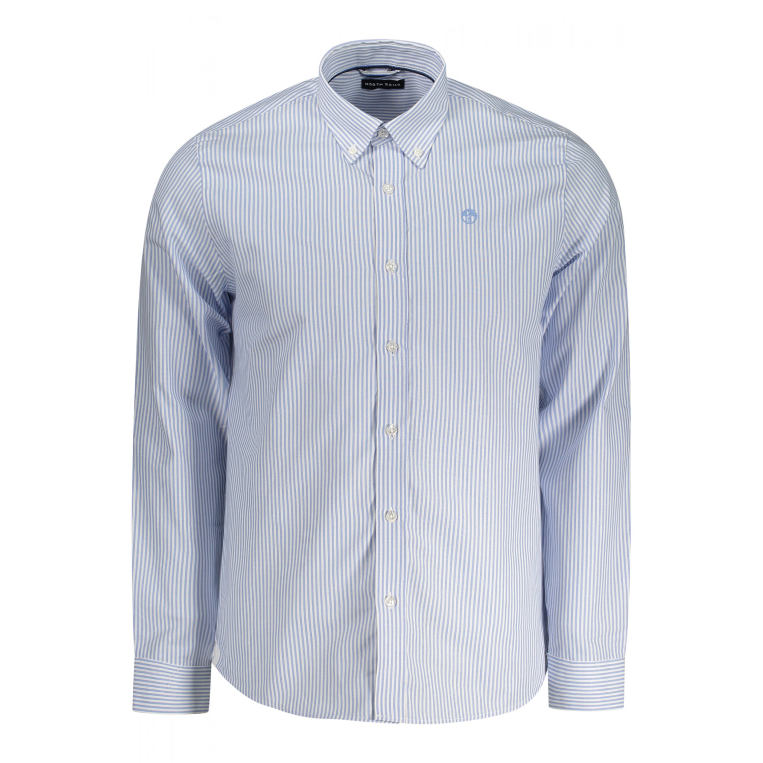 CAMISA DE RAYAS DE MANGA LARGA, CUELLO A BOTONES, PUÑOS CON 1 BOTÓN INTERNO EN CONTRASTE, BOTONES, BORDADO, LOGOTIPO