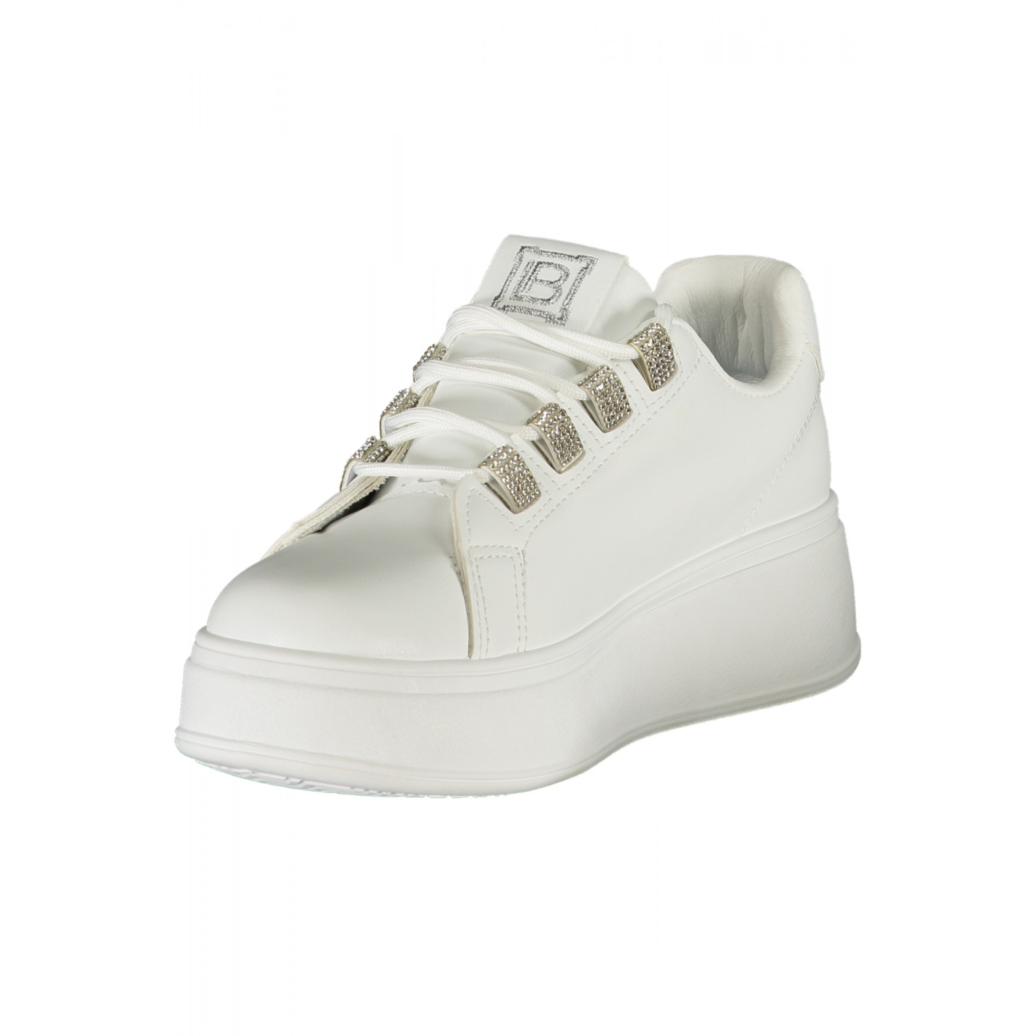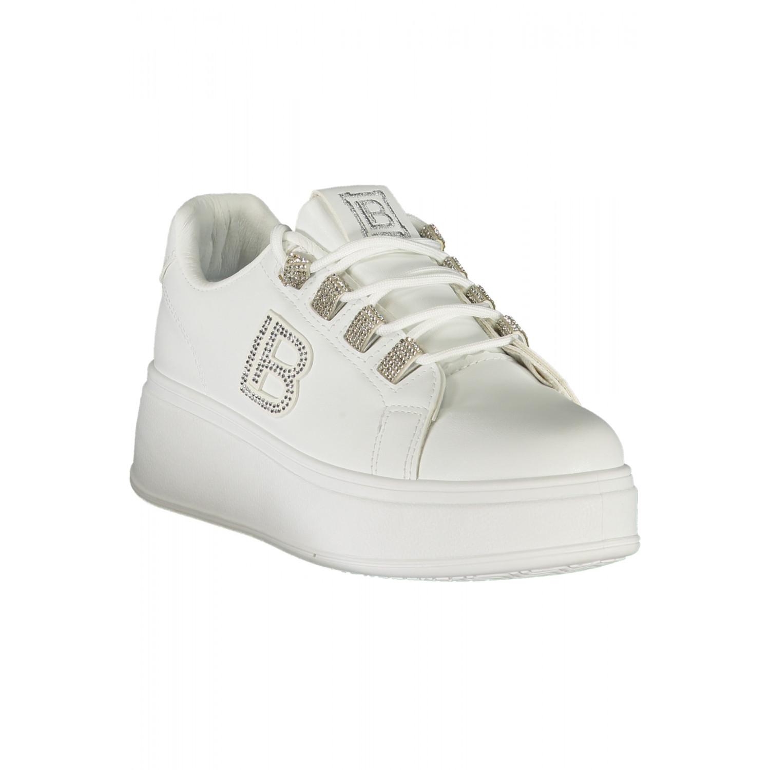 ZAPATO DEPORTIVO CON CORDONES, PANTORRILLA, DETALLES EN CONTRASTE, STRASS, BORDADO, PLANTILLA EXTRAÍBLE, CUÑA DE 4 CM, LOGO
