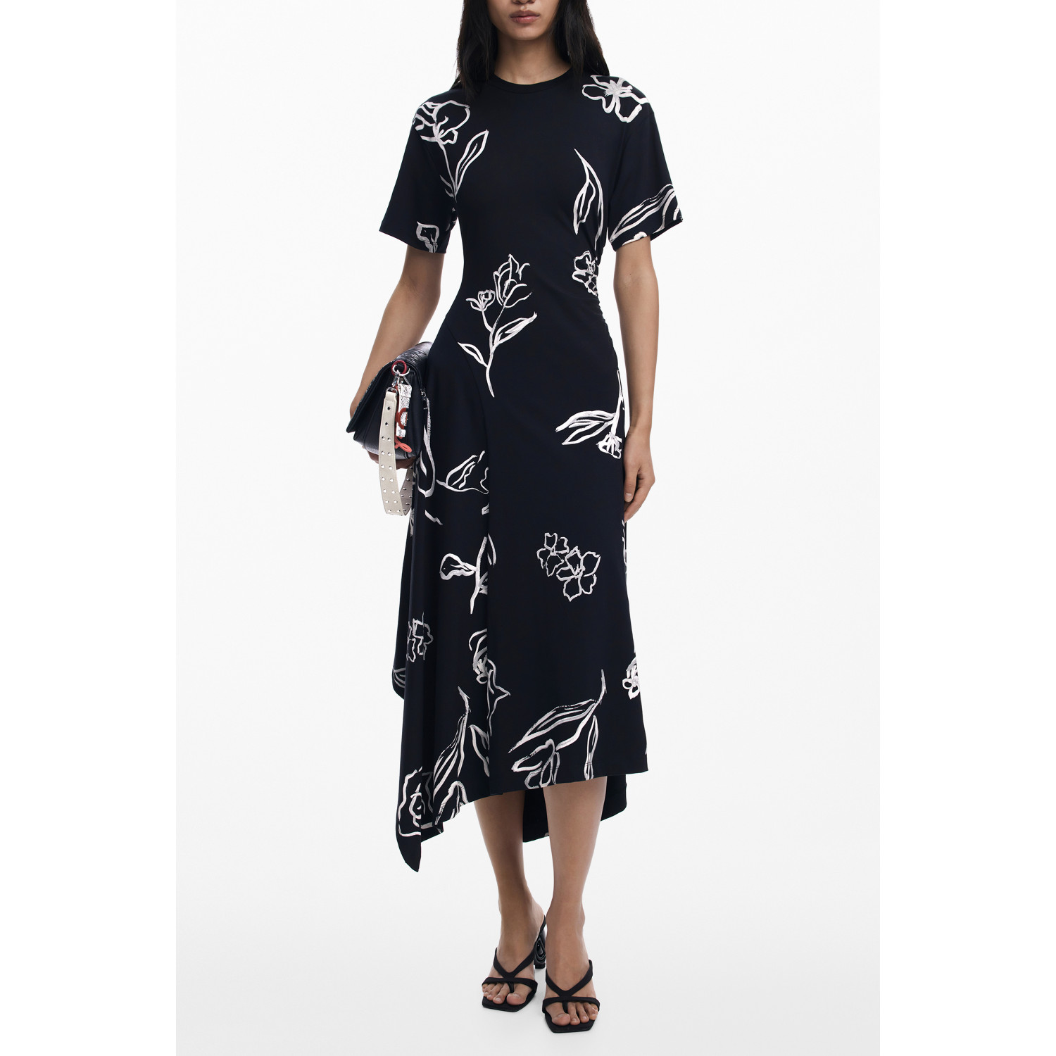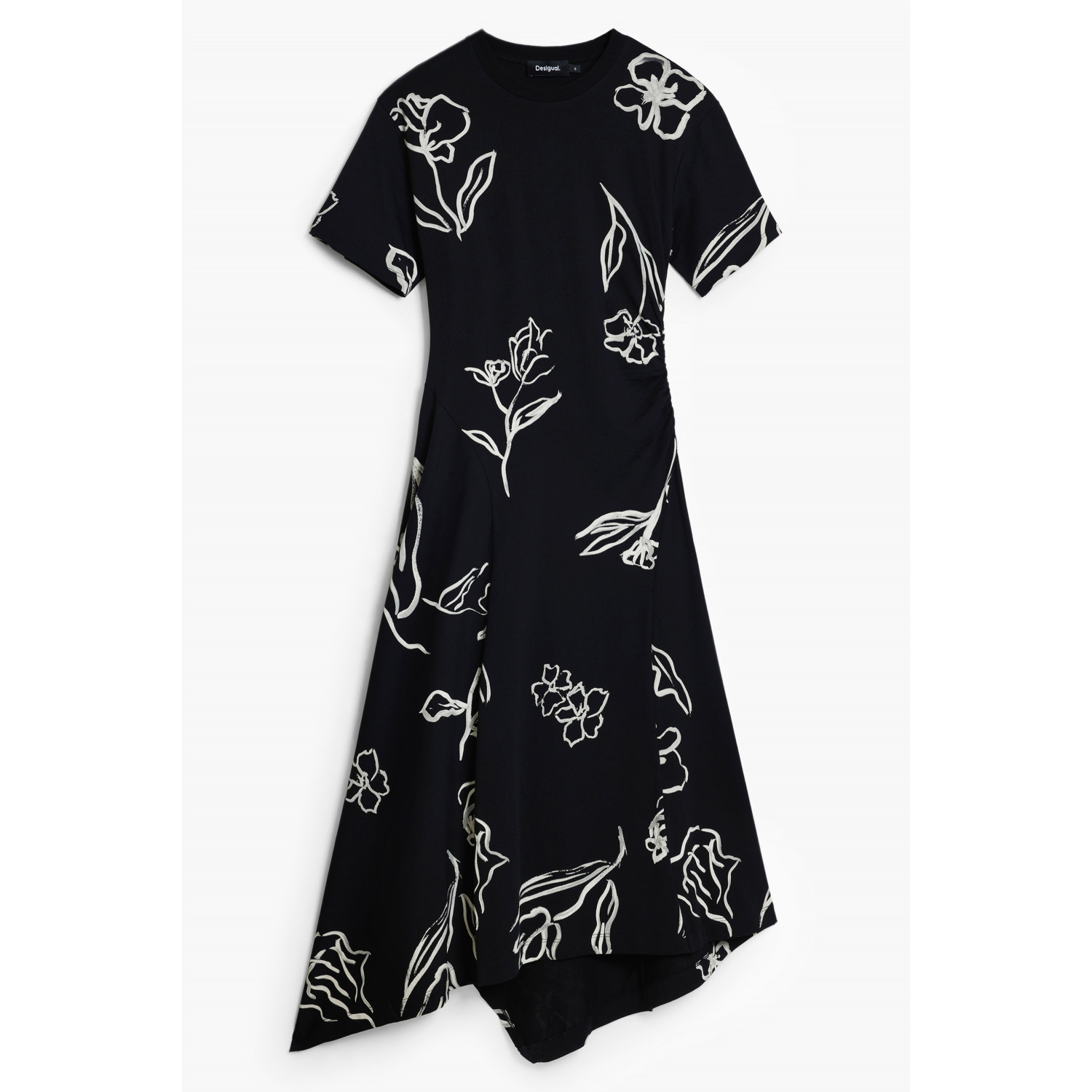 VESTIDO LARGO DE MANGA CORTA, TRANQUILO, CUELLO REDONDO, ESTAMPADO, LOGO