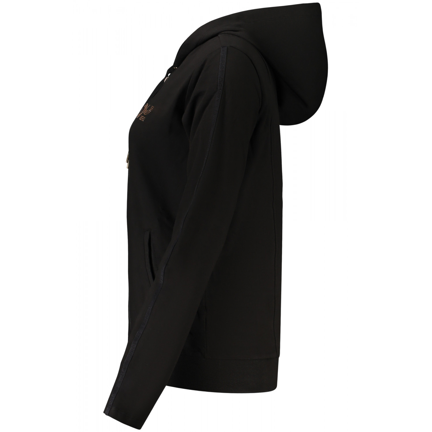 SUDADERA CON CAPUCHA DE MANGA LARGA, 2 BOLSILLOS, CREMALLERA, APLICACIÓN DE DIAMANTES, LOGOTIPO