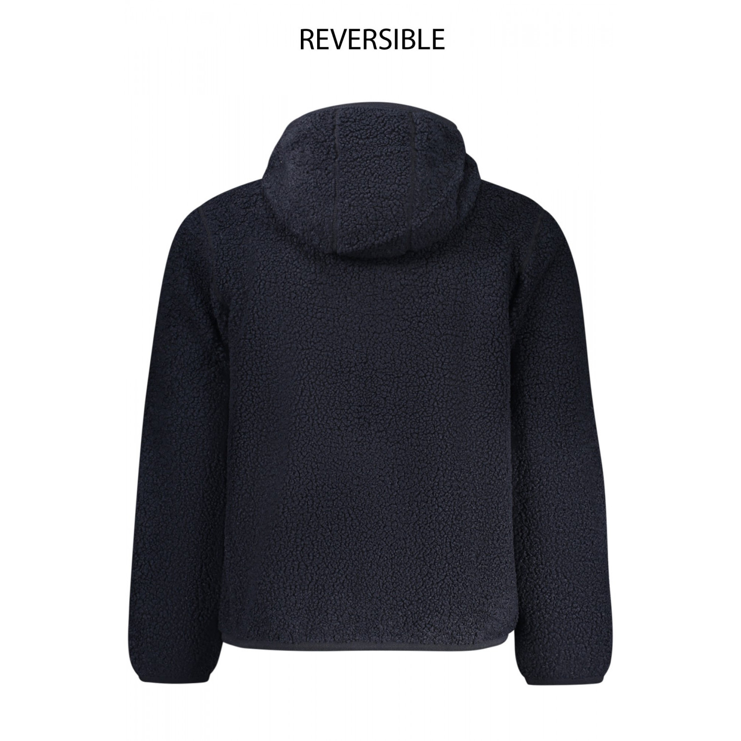 CHAQUETA DE MANGA LARGA CON CAPUCHA, REVERSIBLE, DE TELA DE PELUCHE/FOLLAJE, 2 BOLSILLOS EXTERIORES CENTRALES, 2 BOLSILLOS INTERIORES, DETALLES EN CONTRASTE, CREMALLERA, LOGOTIPO