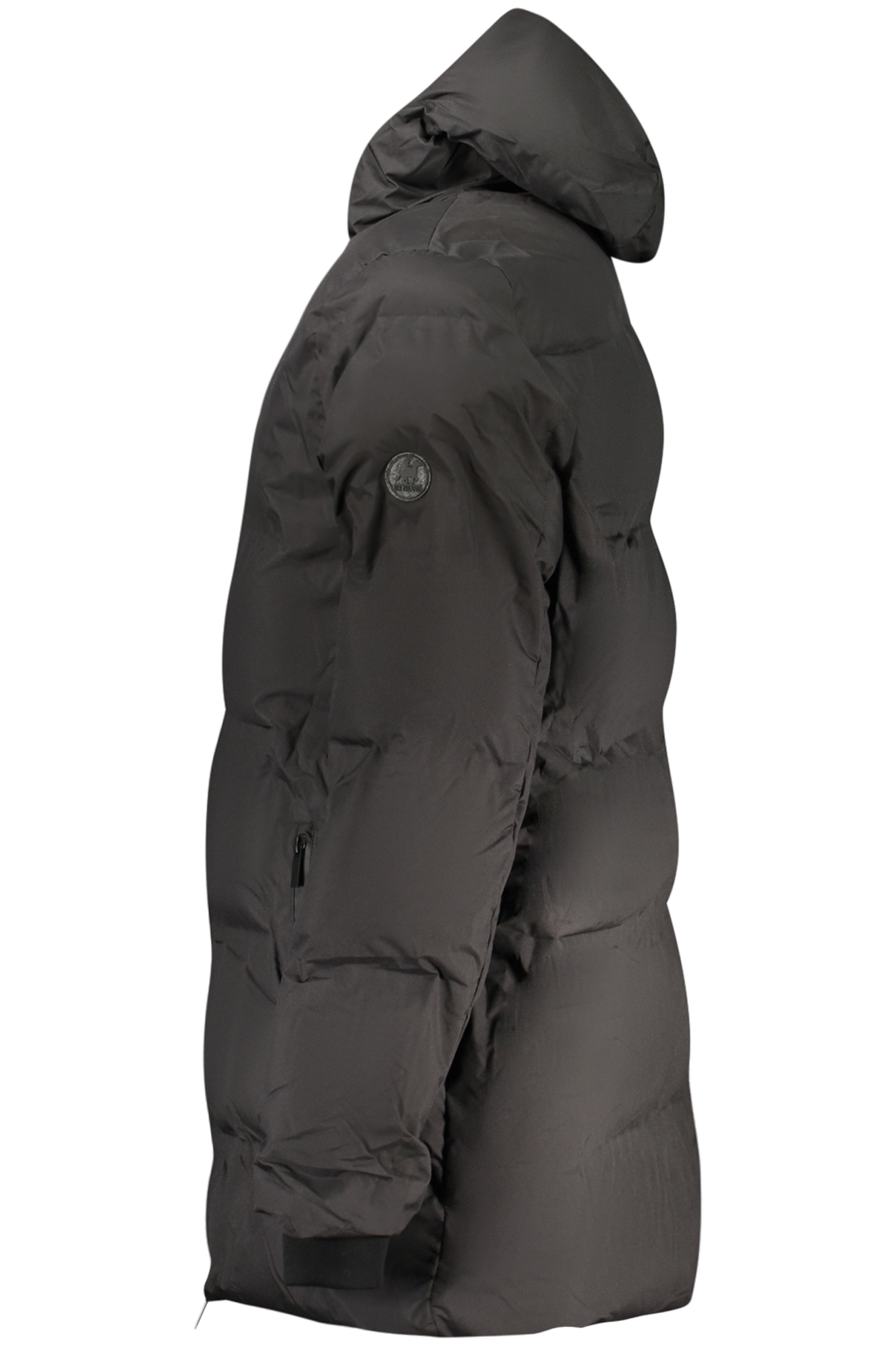 CHAQUETA DE MANGA LARGA CON CAPUCHA, 2 BOLSILLOS EXTERNOS, 1 BOLSILLO INTERIOR, CREMALLERA, APLIQUE, LOGO