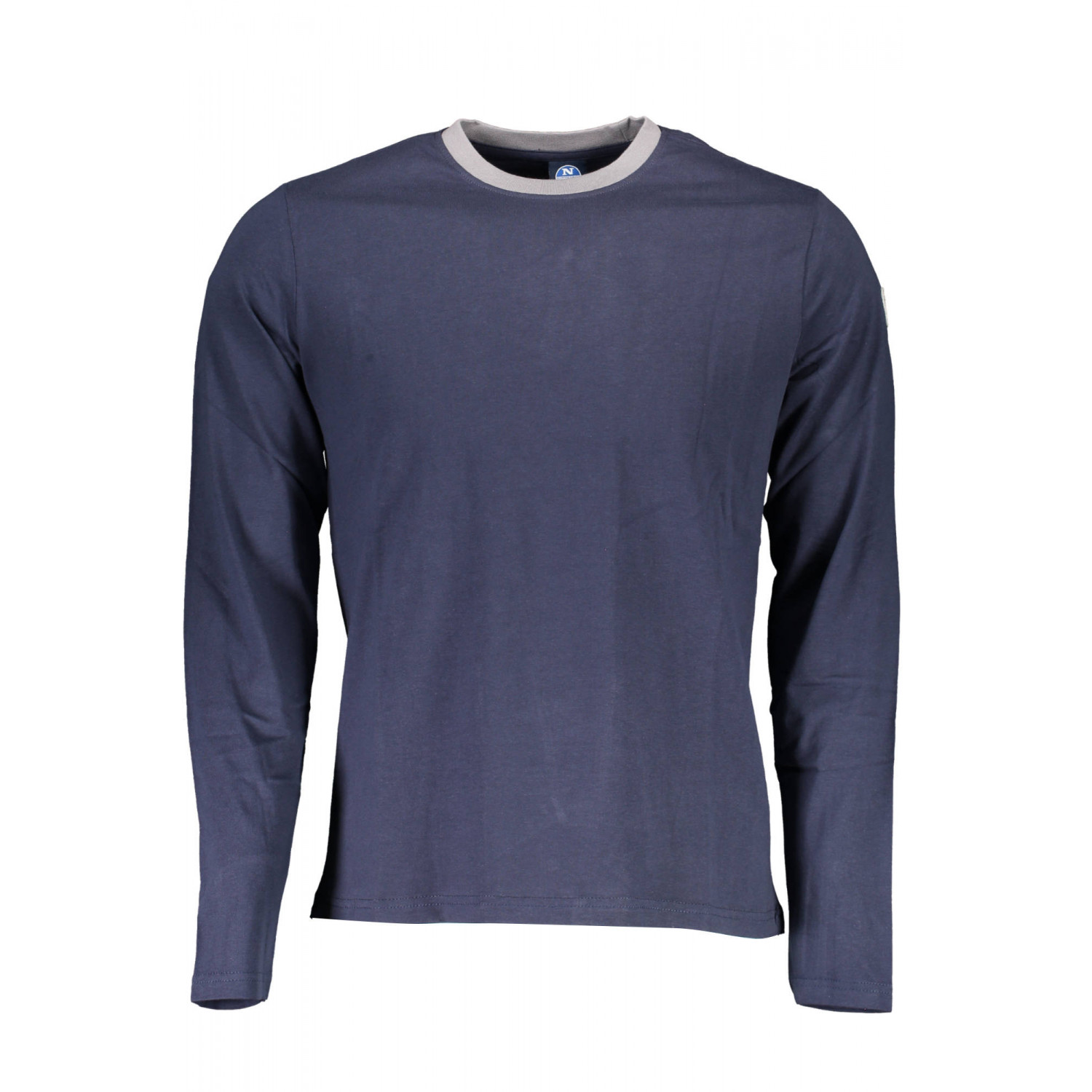 CAMISETA MANGA LARGA, CUELLO REDONDO, DETALLES EN CONTRASTE, APLICACIÓN, LOGO