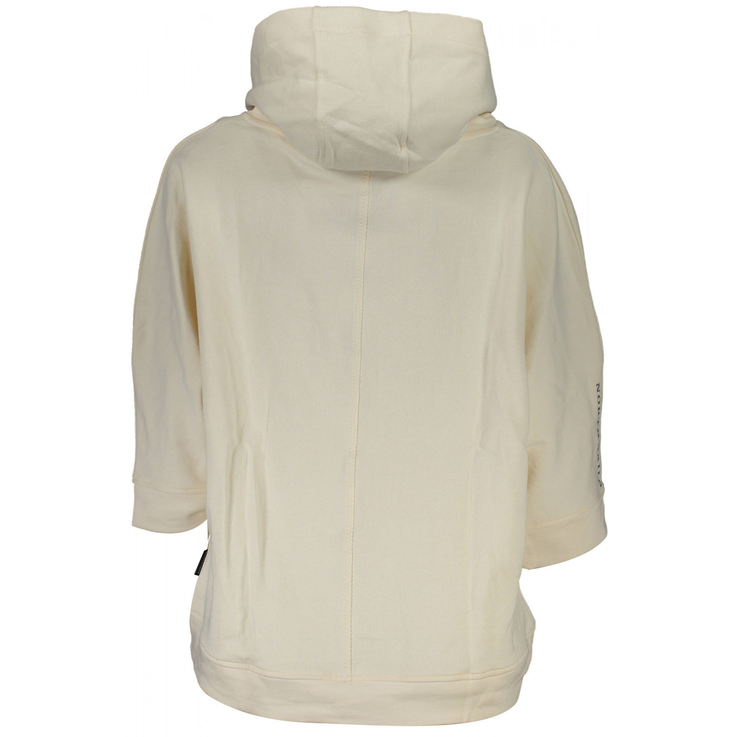 SUDADERA MANGA 3/4 CON CAPUCHA, CEPILLADA, 2 BOLSILLOS CENTRALES, ESTAMPADO, LOGO, FIBRAS ORGÁNICAS