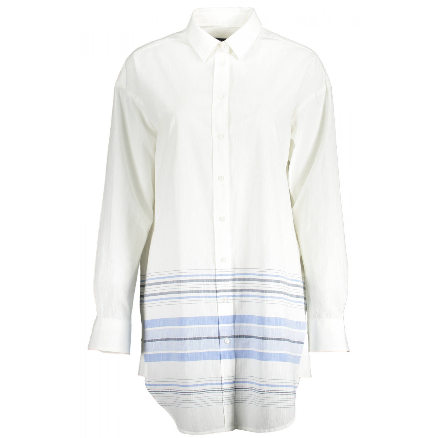 CAMISA DE MANGA LARGA, CUELLO ITALIANO, PUÑOS DE 2 BOTONES, BOTONES, DETALLES EN CONTRASTE, LOGO
