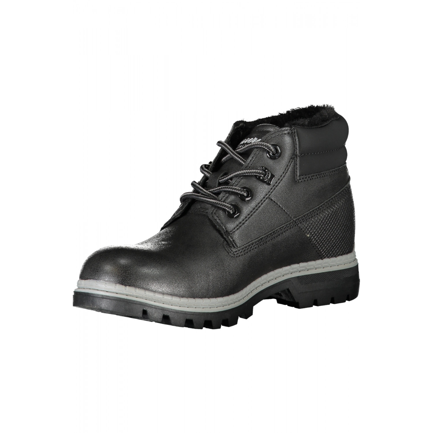 BOTA CON CORDONES, DETALLES EN CONTRASTE, LOGO