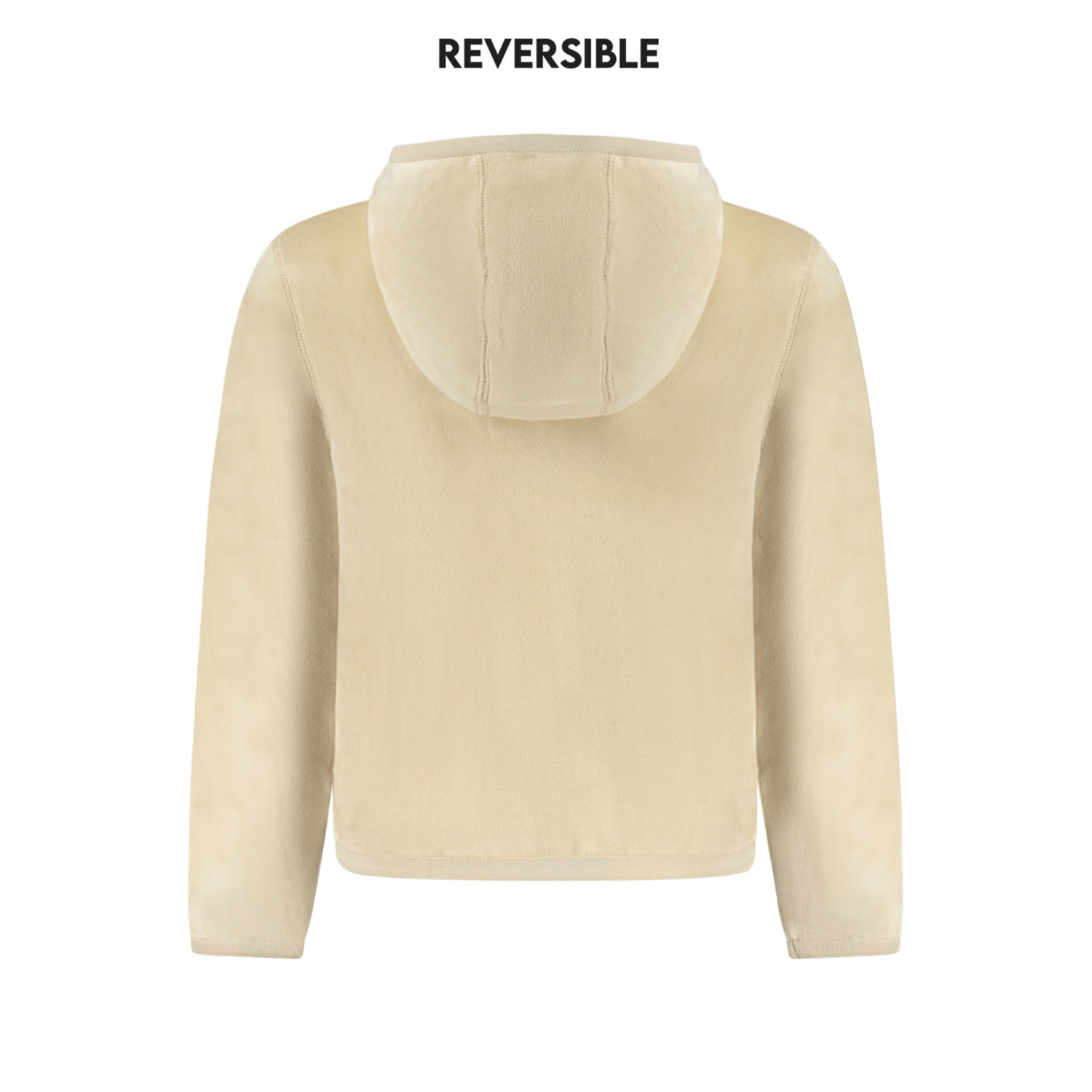 CHAQUETA DE MANGA LARGA CON CAPUCHA, REVERSIBLE BEIGE/BEIGE, 2 BOLSILLOS EXTERIORES, 2 BOLSILLOS INTERIORES, DETALLES EN CONTRASTE, CREMALLERA, LOGO