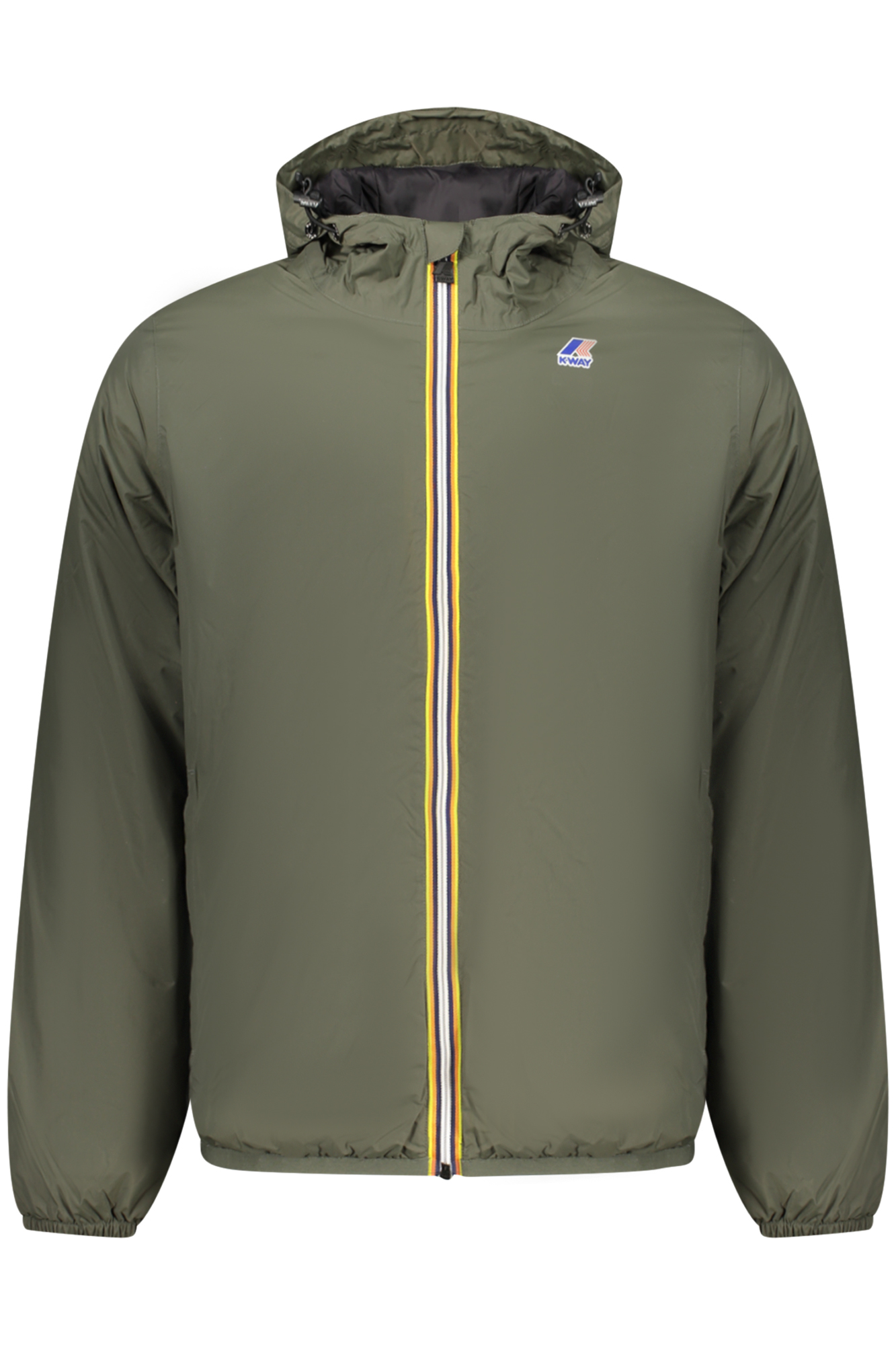 GIUBBOTTO MANICHE LUNGHE CON CAPPUCCIO, 2 TASCHE ESTERNE, 3 TASCHE INTERNE, DETTAGLI A CONTRASTO, ZIP, APPLICAZIONE, TRASPIRANTE, ANTIVENTO, IMPERMEABILE, CUCITURE NASTRATE, LOGO, RECYCLED